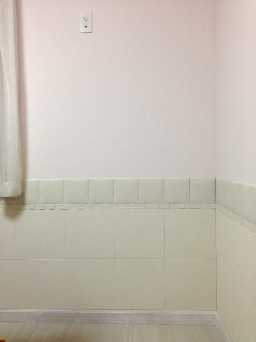 さらに悩んだ結果、床から90cmくらいまでのドライウォールに上からエコカラットを張ることに決めました。