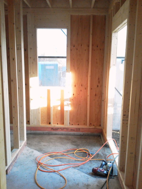 壁パネルの内側は、2インチ×4インチの柱が大量に立っていて、これが家の骨格として壁パネルと共に家を支えてくれるのです。
