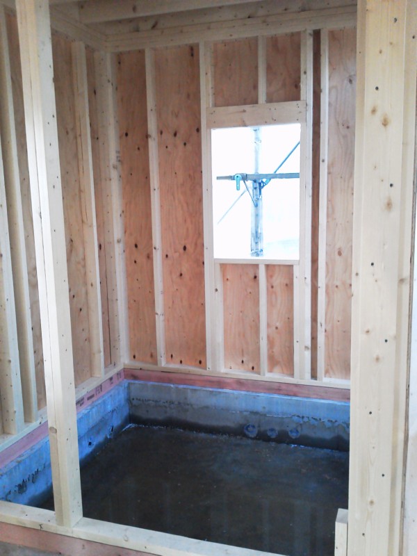 画像は既にタイベックの防水シートと外壁パネル、窓が施工された後の様子です。