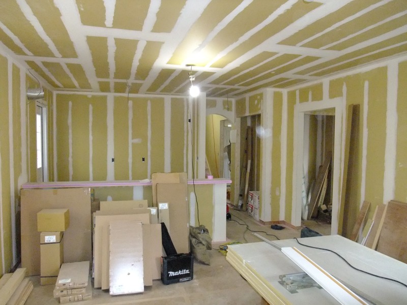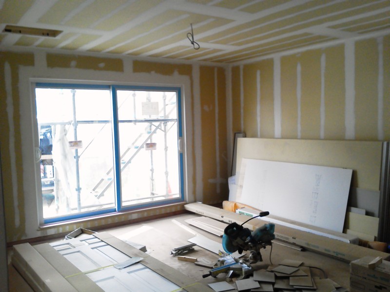 白い包帯、いやいや、白い線のように見えるのは、実は石膏ボードの繋ぎ目をきちんと埋めた跡なんです。